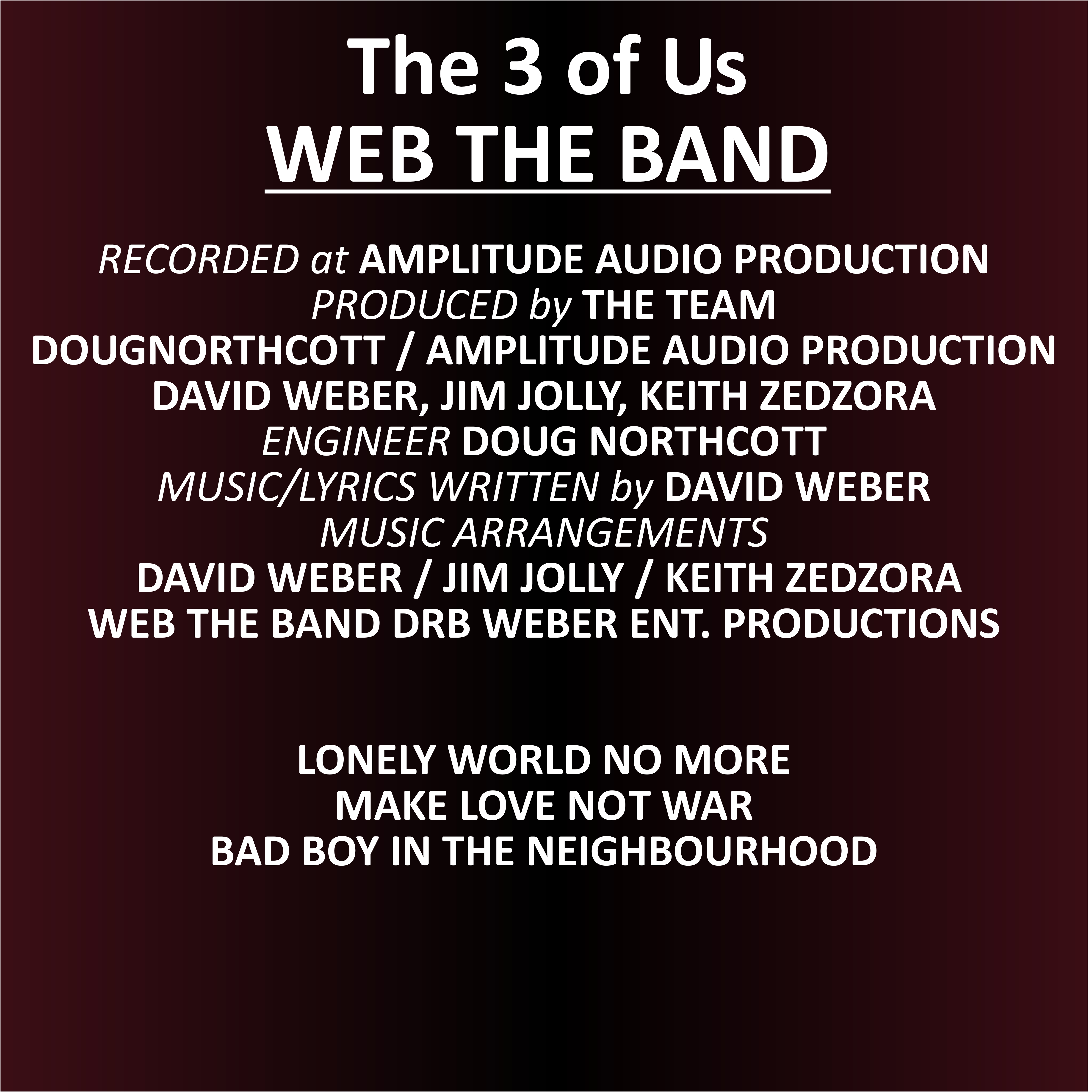 Web (the band) featuring lead singer & composer Dave Weber (known as Randy Weber, former member of Organic Impression - circa late 60's early 70's, 70's & 80's The Dave Weber Band) has been involved in the music scene & arts since 1964. He has travelled & performed in Canada, (Vancouver, Edmonton, Calgary, Winnipeg, Thunder Bay & Halifax) U.S.A (Minneapolis, Hollywood, L.A., San Francisco & Las Vegas) as well as London England.